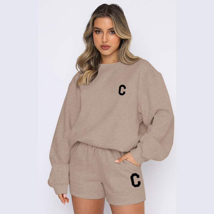 Autumn And Winter New Fleece Fashion Letter Casual Suit