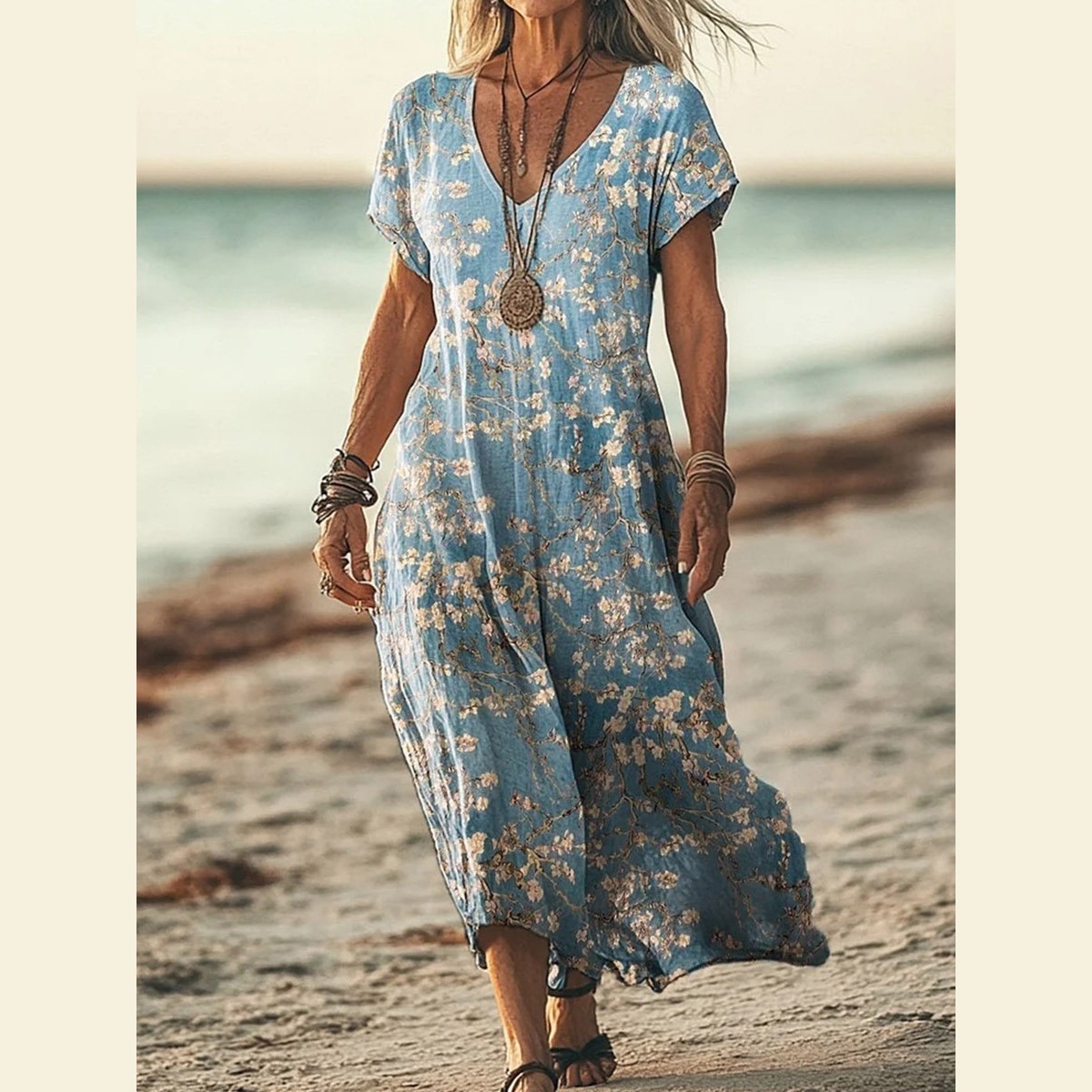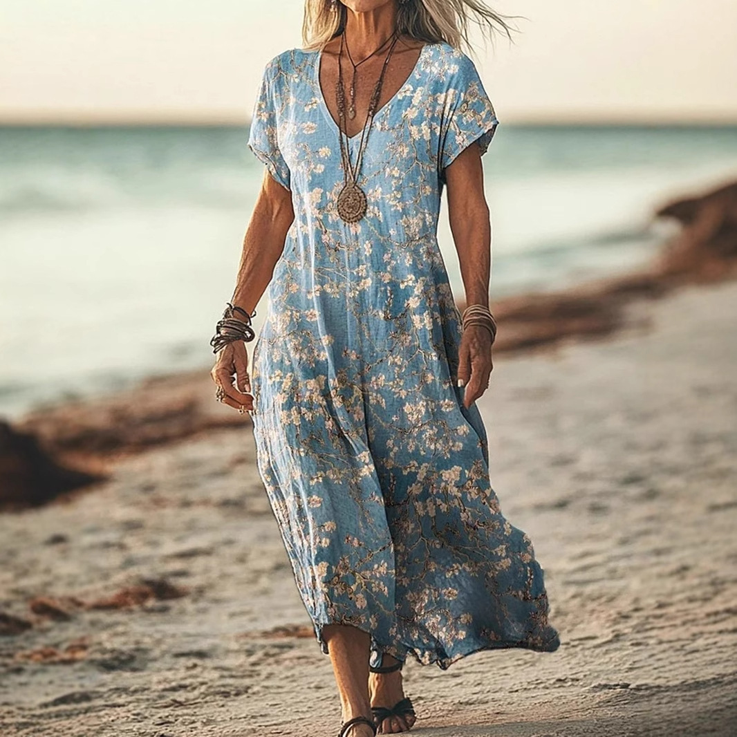 Creative Floral Womens V-Neck Short-Sleeve Dress